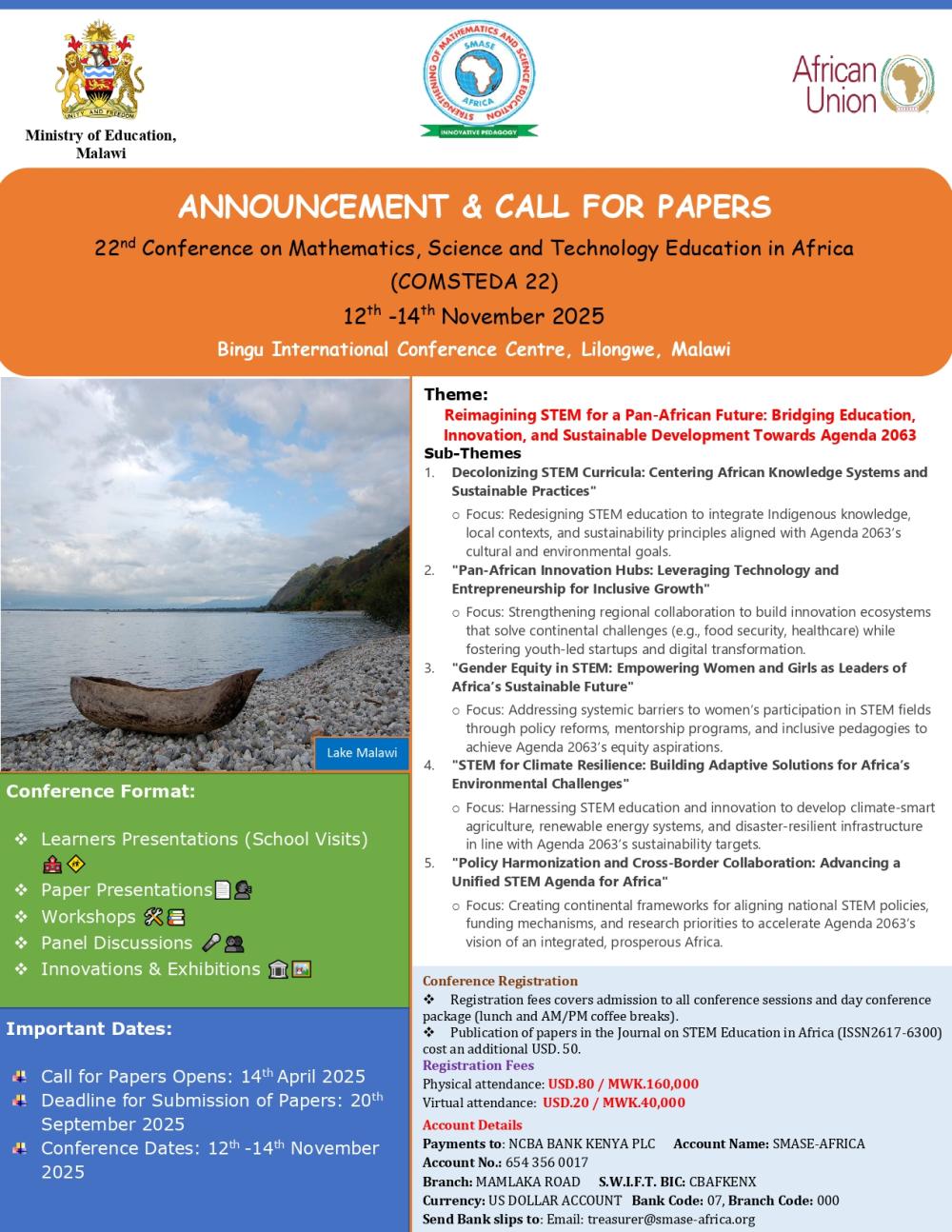 ๐ง Submit papers to: comsteda22@smase-africa.org